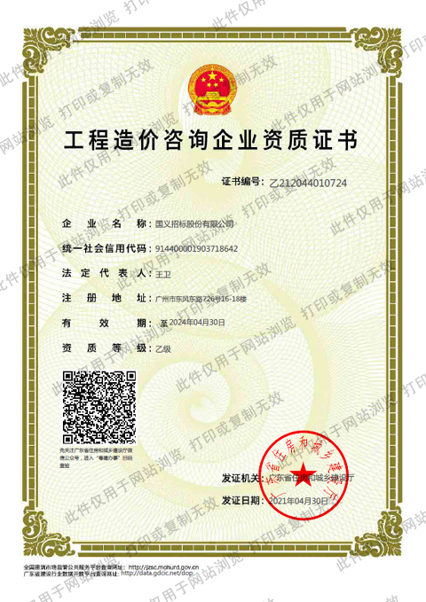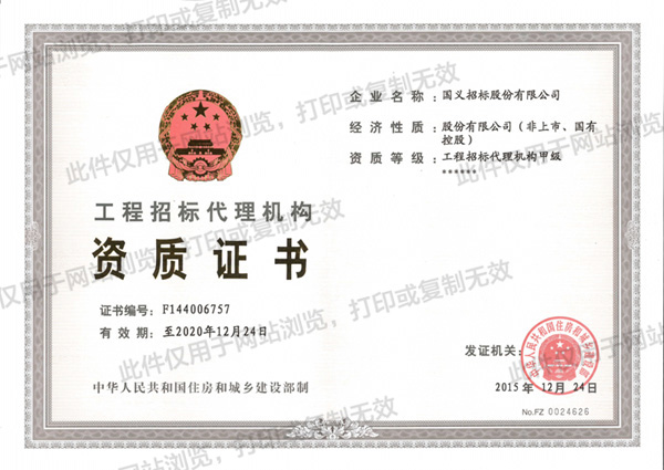 工程招標(biāo)代理機(jī)構(gòu)甲級(jí)資格證書