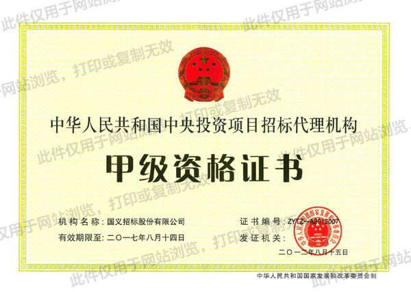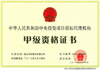 中央投資項(xiàng)目招標(biāo)代理機(jī)構(gòu)甲級(jí)資格證書