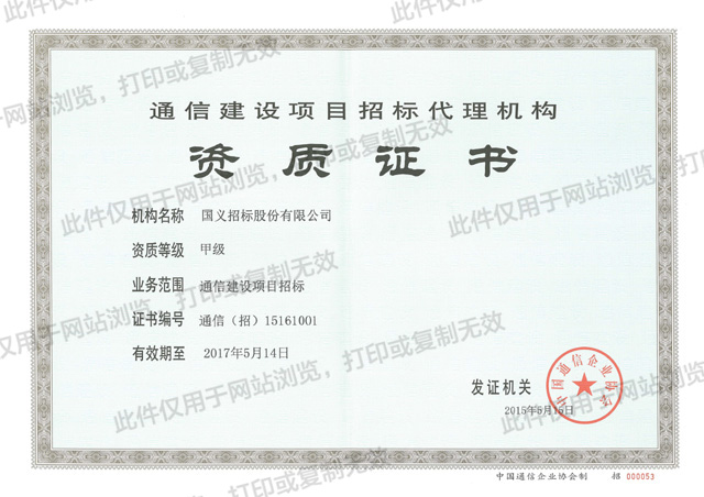 通信建設(shè)項(xiàng)目招標(biāo)代理機(jī)構(gòu)甲級(jí)資質(zhì)證書